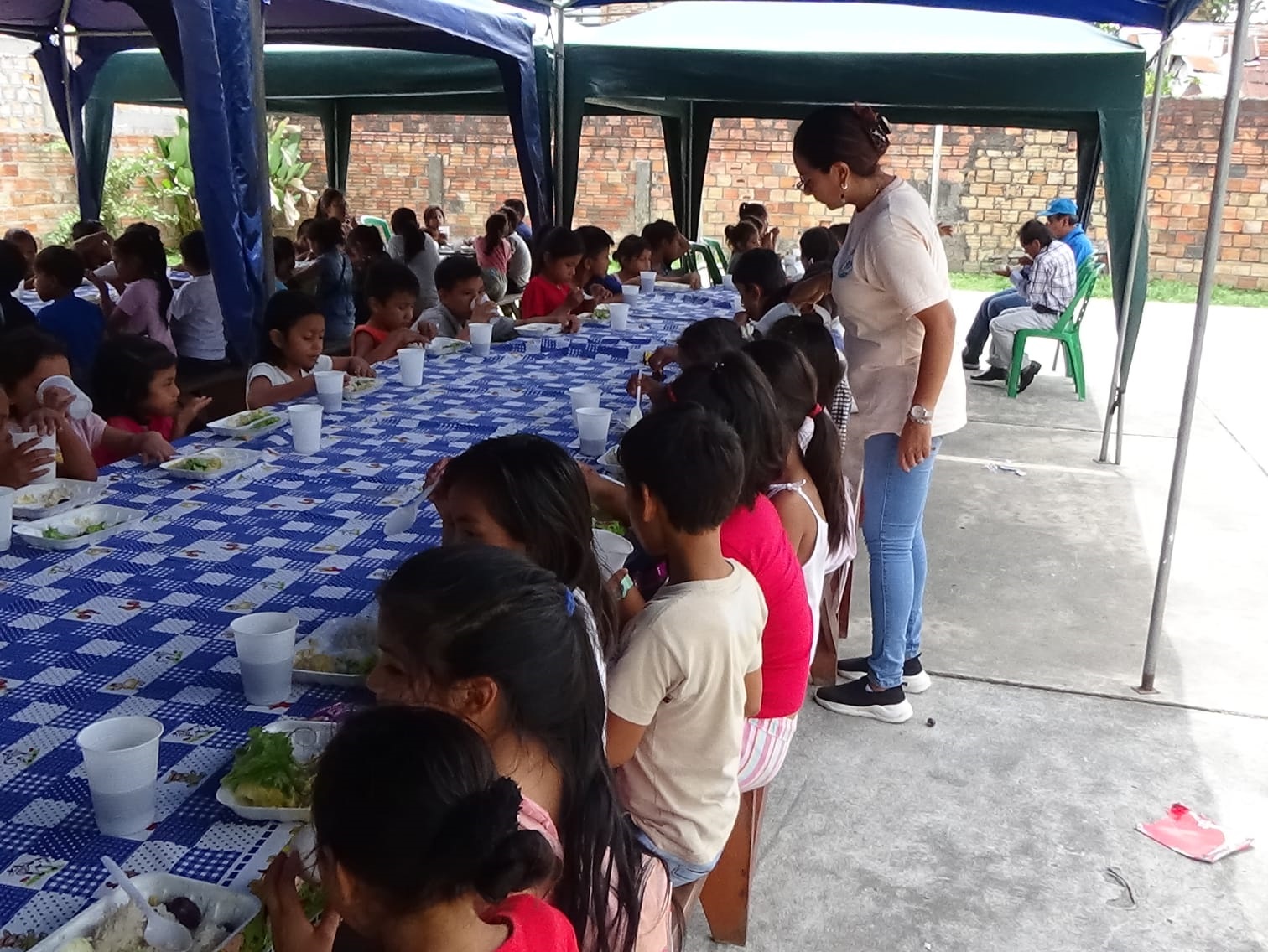 Considerando que el 16 de octubre se conmemora el Día Mundial de la Alimentación y cuyo objetivo es concienciar a las personas sobre la importancia de liberar a la humanidad del hambre y la malnutrición, gestionando de forma eficaz un sistema alimentario mundial, la licenciada Tania Gamarra Tello, directora del Comedor Infantil “Niños de Jesús” (CINJ), como parte de su servicio extraordinario de protección social y contando con la colaboración de personas naturales y jurídicas de nuestra localidad, el sábado 15 de octubre a partir de las diez de la mañana, realizó el Almuerzo Benéfico Infantil Gratuito, dirigido a 100 niños tanto varones como mujeres de seis a once años de edad de hogares de extrema pobreza que se ubican en los asentamientos humanos de los alrededores de la indicada dependencia asistencial.