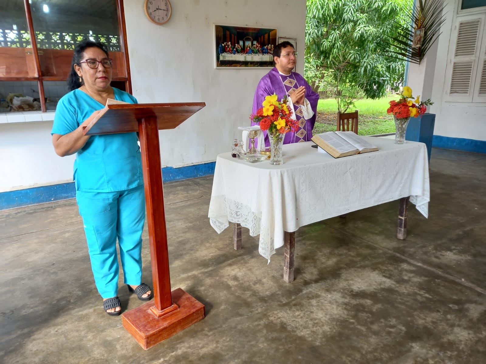 La acción litúrgica fue oficiada por el padre Agustín Arevalo Angulo, sacerdote de la parroquia San Pedro Apóstol, el mismo que resaltó los acontecimientos de la pasión, muerte, sepultura y resurrección de Cristo, que constituyen el misterio pascual, el centro de la vida del Señor. Lilia Reyes Ruiz, presidenta del Directorio de la Sociedad de Beneficencia de Iquitos, indicó que esta misa está considerada en el cronograma anual de actividades de esta dependencia asistencial y busca fortalecer la parte espiritual de sus ocupantes, a través de la reflexión cristiana por esta fecha y que les motive a vivir la fraternidad y hacer vida real el mandamiento del nuevo amor.